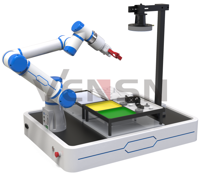 机器人与视觉系统结合,可以对不同尺寸、外观的目标进行识别,开展目标分拣、智能码垛、物体识别、字符识别等多种人工智能基础实训项目。