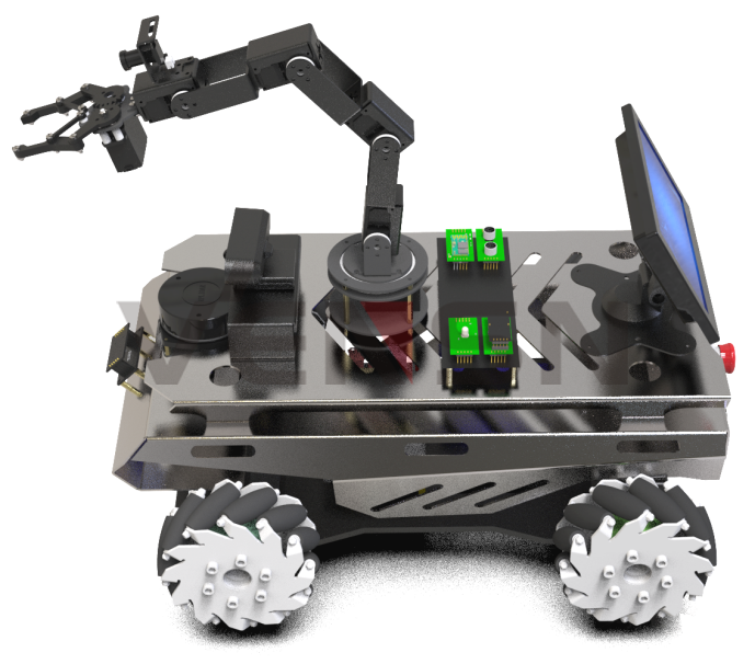 机器人是综合自动控制、微电子、信息技术、以及机械结构于一体的等多学科交叉的综合产物。随着近年来现代工业、服务业的智能化产业不断升级,以移动机器人为载体的智能控制、传感器融合、信息处理以及协同作业发展迅速,正逐步成为高端智能化研究的热点与难点。本产品以移动机器人为载体,以机械手臂为车载执行单元,并配置视觉、激光雷达、运动、语音、超声波等各类传感器,使得机器人具备环境感知、路径规划、智能控制、移动抓取、物流输送等多重功能。通过对该系统的应用与操作,可以帮助学生掌握基于人工智能技术的机器人运动控制、传感器感知、机械臂和机器人协同控制、视觉巡检等领域的相关知识与实践方法。