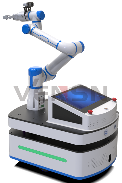复合型移动协作机器人由移动机器人、协作机器人组合而成,采用激光 SLAM 导航,结合陀螺仪、IMU、里程计等多种传感器融合算法,具有自主定位、路径规划和移动抓取等功能。机器人通过在协作机器人末端搭载深度视觉系统,可实现对环境信息的三维感知,并引导协作机器人进行不同类型物体的准确抓取,或与用户进行人机交互与协作。产品可应用于智能制造、现代农业、无人商超、智能家居等多种场景。