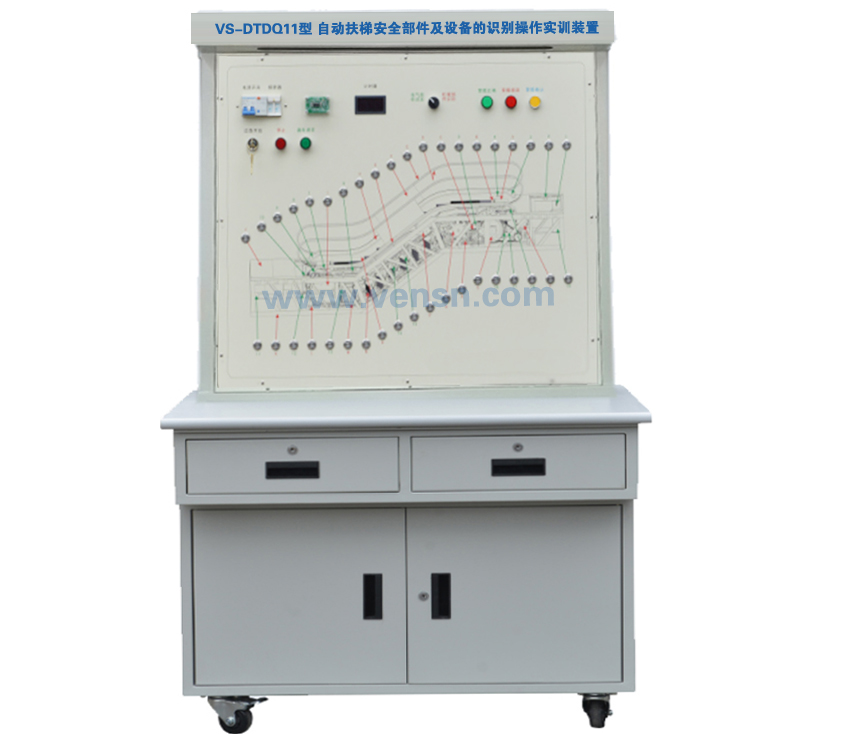 VS-DTDQ11型 自动扶梯安全部件及设备的识别操作实训装置能进行自动扶梯机械、电气部件的识别的教学、实训、考核,通过实训可以让学生快速识别自动扶梯机械部件和电气部件。了解其作用、安装位置等自动扶梯基础知识,从而让其快速地掌握自动扶梯的基本结构与原理。老师可以根据教学需要对学生进行自动扶梯机械部件与电气部件的识别实训与考核使用,非常适合高职、高专、中等职业院校开设的电梯相关专业的入门教学与能力考核使用,另外还可作为技工学校、职教中心、职业资格鉴定站进行电梯职业技能实训与技能鉴定和考核使用。