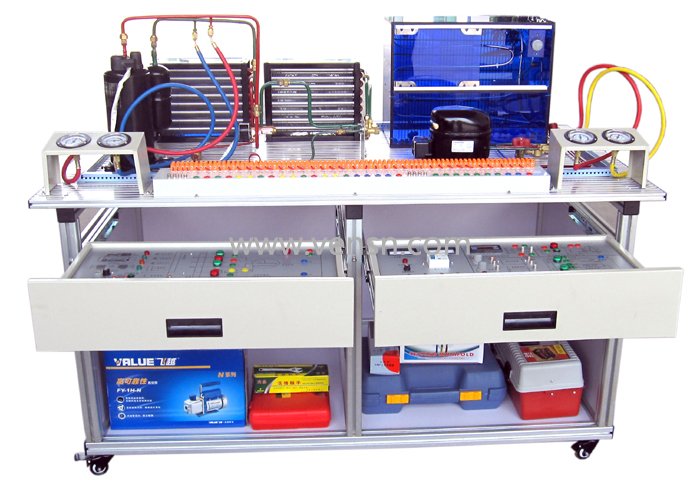 1.装置采用模块化设计,由导轨式铝合金安装平台、空调系统、电冰箱系统、电气控制系统等组成。