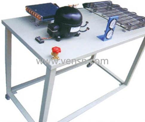本实训设备主要以冰箱压缩机、冷凝器、蒸发器、干燥过滤器等器件为实训平台,学生可运用各种实训工具完成割管、弯管、扩管、焊接、加氟、检漏等制冷管路实训。适用于技工院校、职业学校作为制冷基本技能的实训。