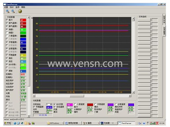中央空调机由于工程复杂,设备分散,有的已经装修在开花板上测试程序,一但出现了故障,工程量相当大,为了能够快速准确地测出故障是由主机机组还是室内机的故障的,每个生产厂家根据生产的和维修的需要而开发了中央空调测试程序。可测试压缩机的运转频率,传感器的各种数据,电子膨胀阀的工作步数等几十种中央空调的工作数据和状态,软件可实现对内机的控制,可以对1-64台内机的状态进行设定。是高校提供了好的研究的学习设备。
