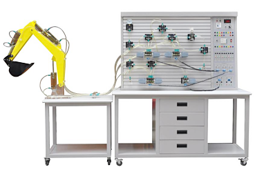 3、透明液压PLC实训装置主要由实训桌、实训台、挖掘机试验台、液压元件和电器控制器件、可编程控制器(PLC)等组件组成。