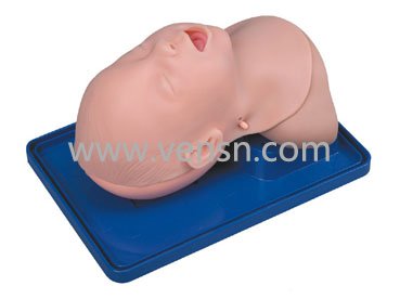 功能特点: ■ 婴儿的舌、口、咽、会厌、喉、声带和气管的真实解剖。 ■ 经口、鼻气管插管。 ■ 仿真材料的功能模拟。 ■ 模拟婴儿的头部活动后仰,以便正常操作。 ■ 可以通过吹气方式、测试插管是否正确地插入气道。 ■ 观察双肺与胃的供气膨胀。